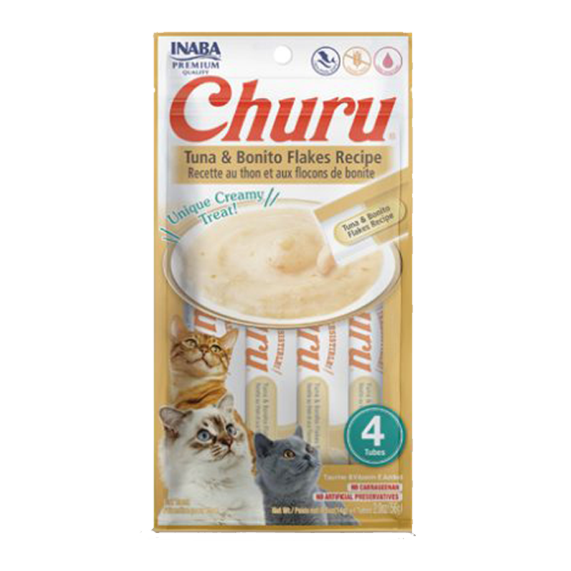 Los snacks para gatos Inaba Churu se hacen con atún silvestre o pollo criado en granjas. No contienen cereales, conservantes ni colorantes artificiales, y tienen el contenido de humedad necesario para la salud de los felinos. Simplemente rasga un tubo y apriétalo un poco para alimentar con tu mano a tu gato. También puedes verterlo en un plato o añadirlo por encima de alimentos húmedos o secos.