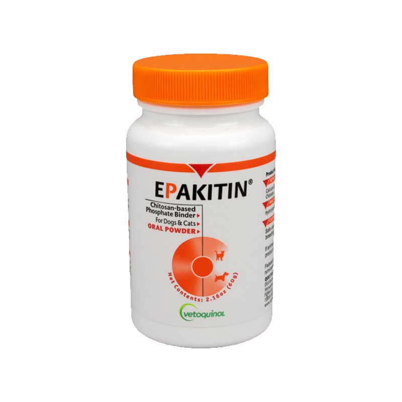 MODO DE ADMINISTRACIÓN Y CANTIDAD A SUMINISTRAR: Administrar vía oral 1 cucharada dosificadora (incluida) de Epakitin por cada 10 libras (5 kg) de pesos, dos veces al día, con la comida. Espolvoree el producto sobre el alimento. La cuchara dosificadora provee 1 gramo de Epakitin. Asegúrese de administrar y mantener siempre agua fresca a los animales. En animales con IRC se recomienda administrar una dieta baja en fósforo. Epakitin puede ser usado con el alimento regular de la mascota (húmedo o seco). Se puede utilizar en conjunto con dietas renales, para un mejor resultado de control de los fosfatos.