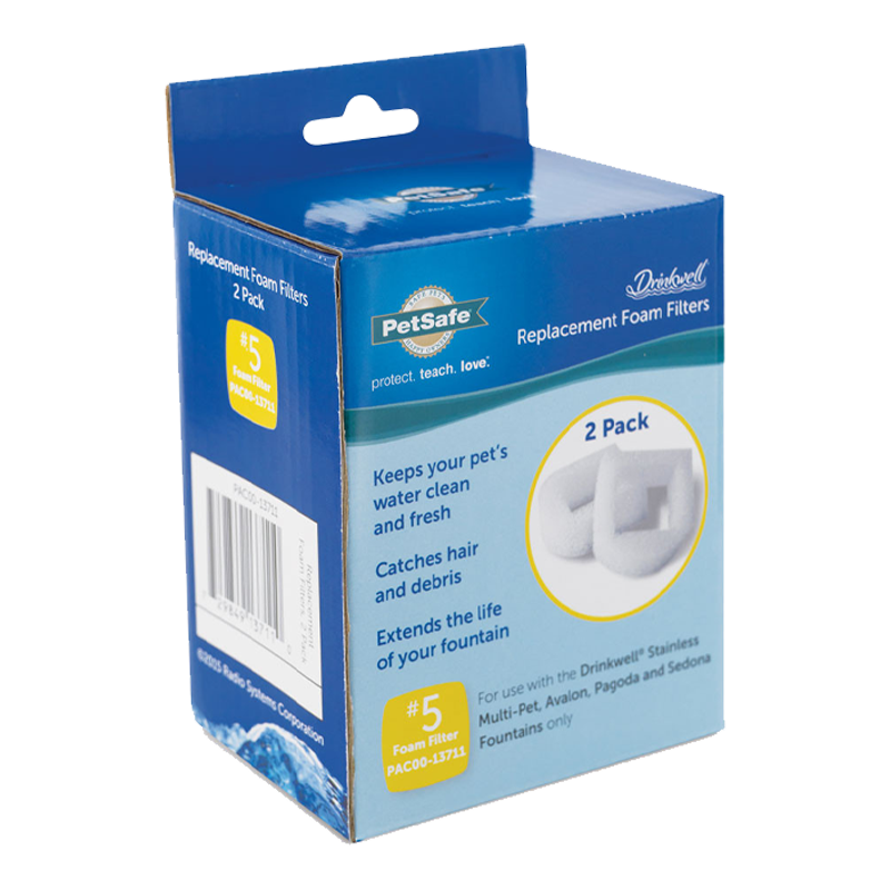 Los filtros de espuma ayudan a mantener más limpia la bomba de las fuentes de agua y mantienen su caudal. El paquete trae 2 filtros y son compatibles con las fuentes PetSafe, Drinkwell, Butterfly, Avalon, Pagoda, Seascape, inoxidable Multi-Pet, Sedona, Seaside y Creekside.